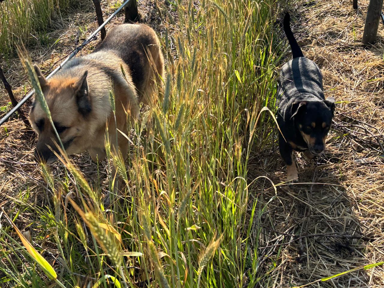 There’s a certain satisfaction in seeing neat rows after the work is done – vines trimmed back, ready to wake up and stretch into spring. It feels less like cutting back and more like setting the stage for the year’s story. The dogs trot alongside us, occasionally chasing a bird or pausing to watch, as if they understand that these quiet spring efforts are the roots of future harvests.